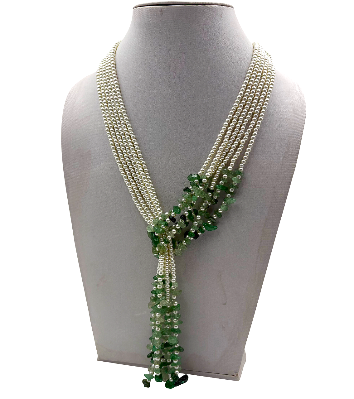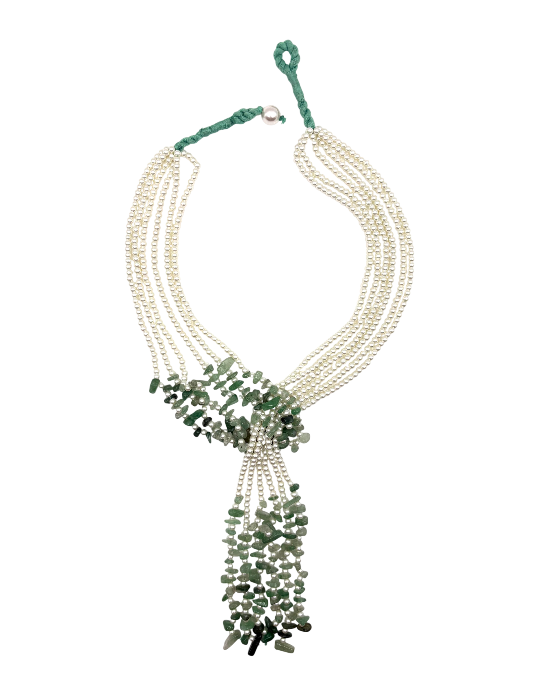 HANDMADE 4mm GLASS BEAD WITH GREEN UNCUT STONE SHELL PEARL WITH THREAD WORK NECKLACE