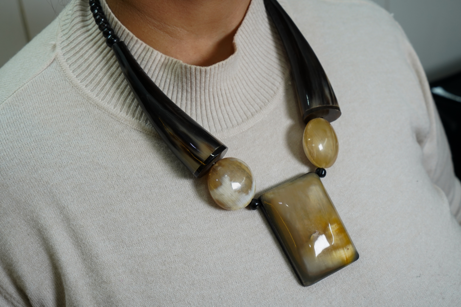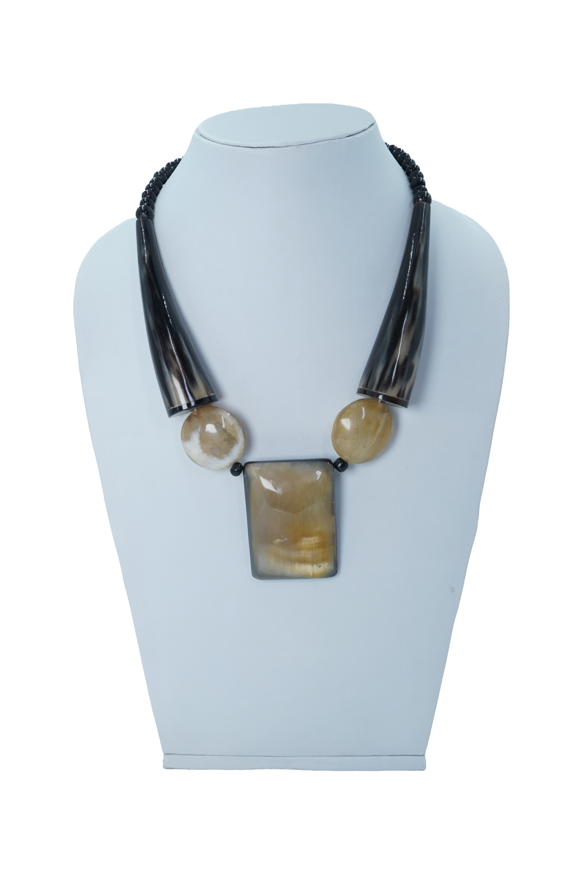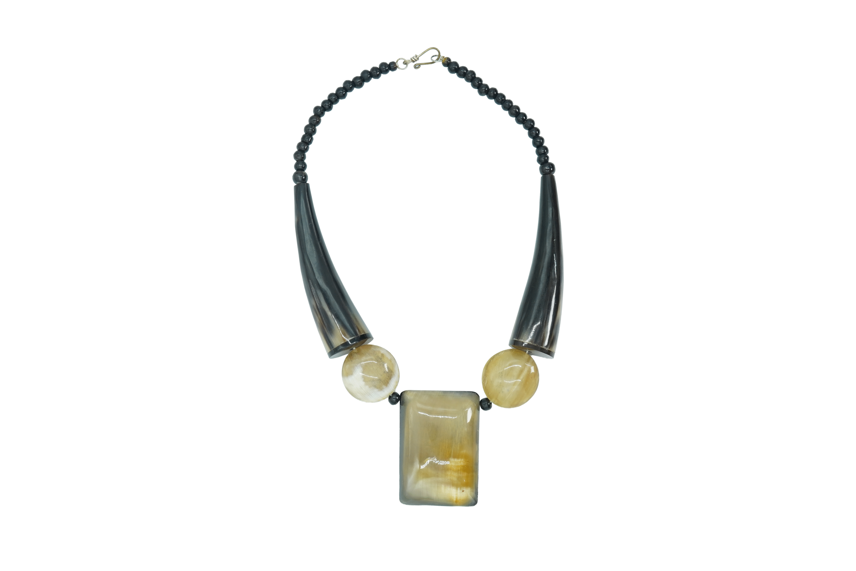 BEAD TRIBAL STYLE HORN BONE FISH HOOK NECKLACE