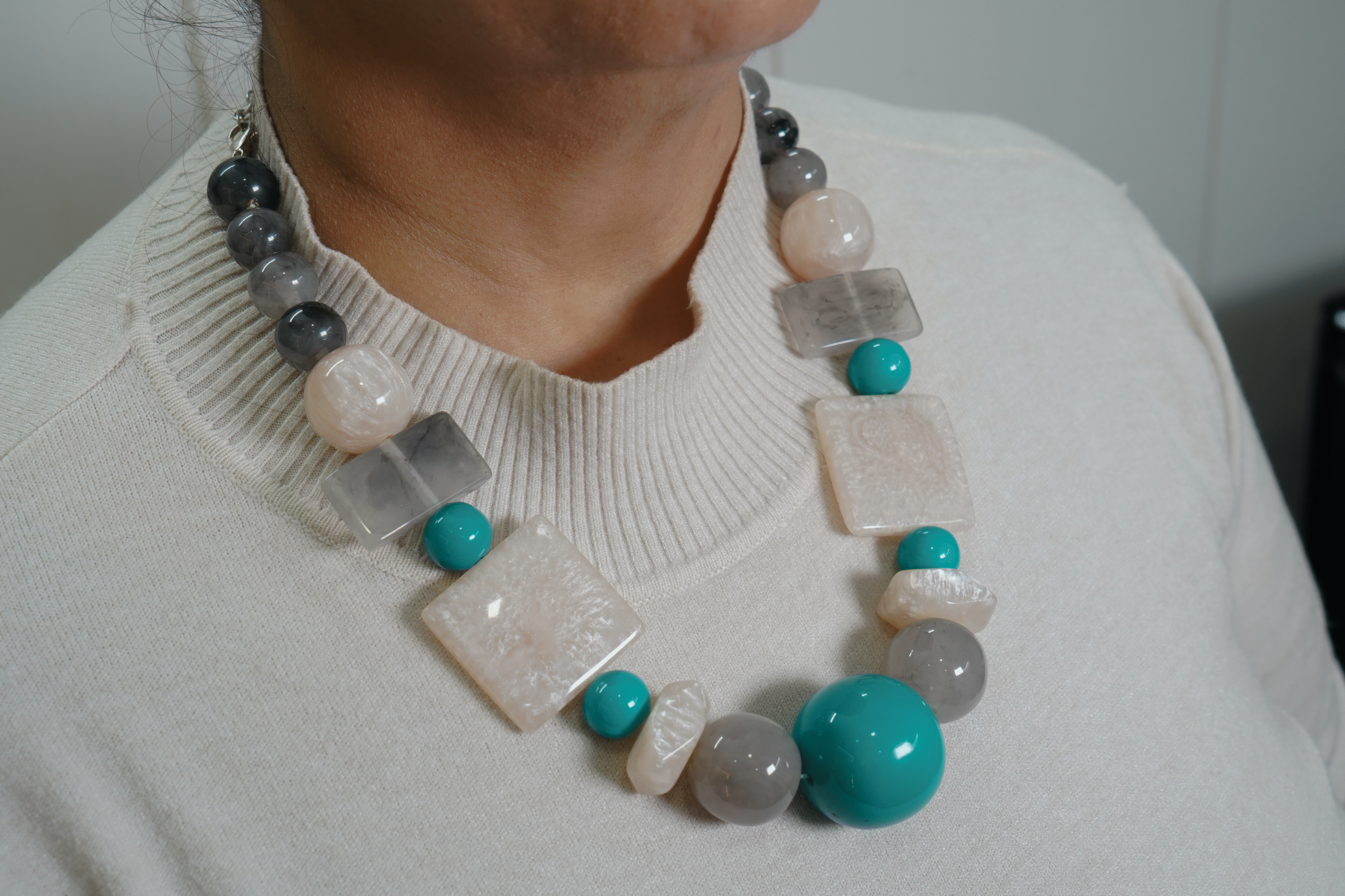 TURQUOISE, WITH COLORFUL RESIN BEAD SQUARE